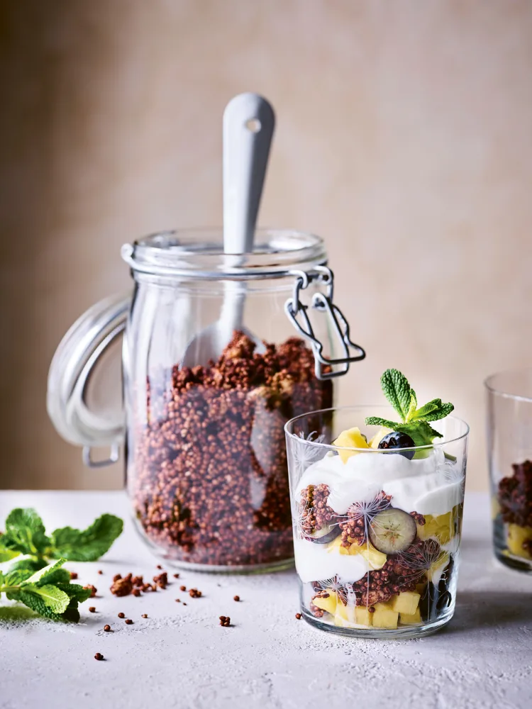 FODMAP Crunchy boekweit-roggegranola met speculaaskruiden