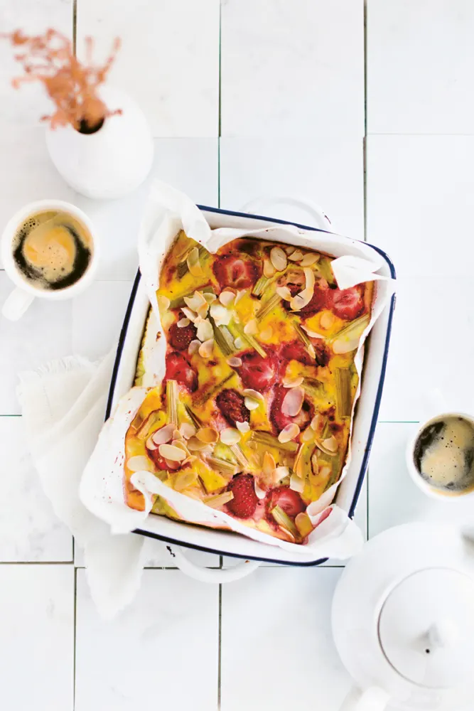 FODMAP Clafoutis met rabarber en aardbeien