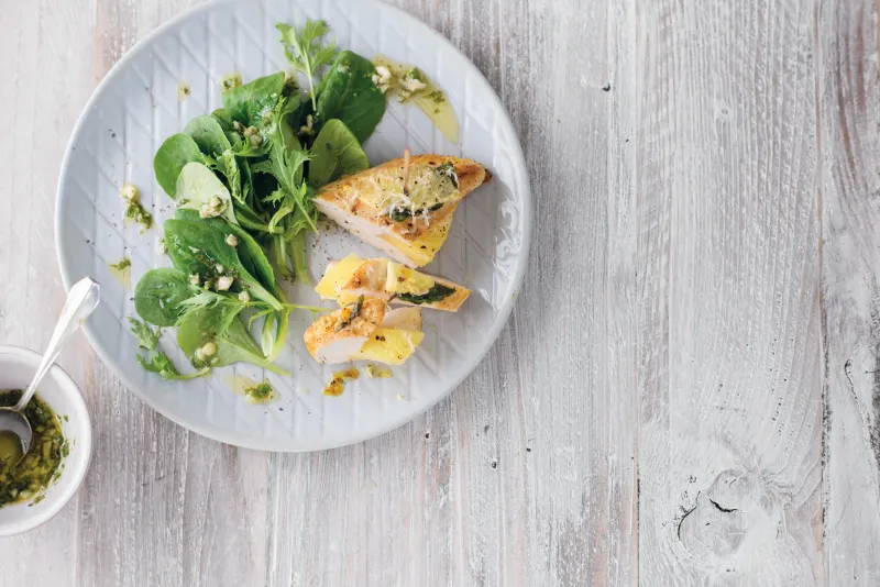 FODMAP Kip met ananas uit de oven met munt-amandeldressing