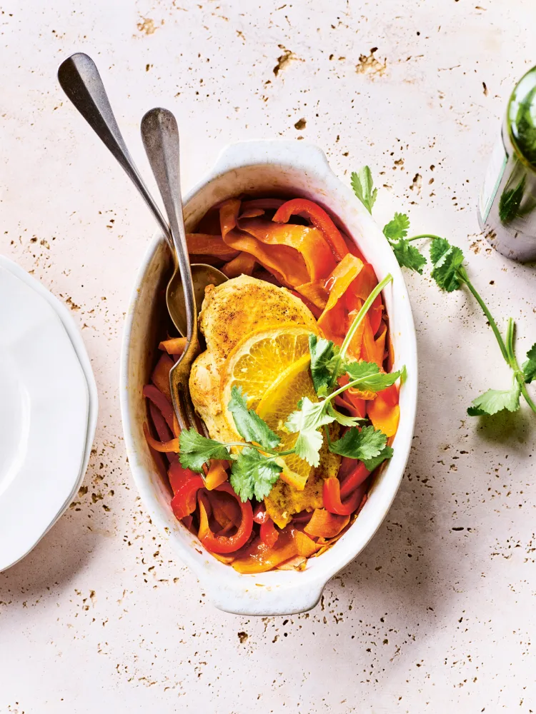 FODMAP Kip uit de oven met wortelsliertjes en paprika