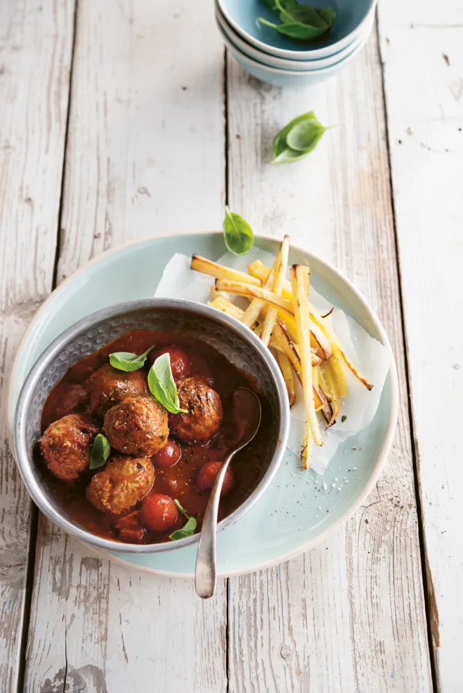 FODMAP Peterseliegehaktballetjes met frietjes van pastinaak