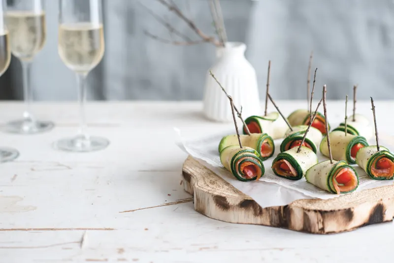 FODMAP Rolletjes van courgette met zalm en kerstomaatjes