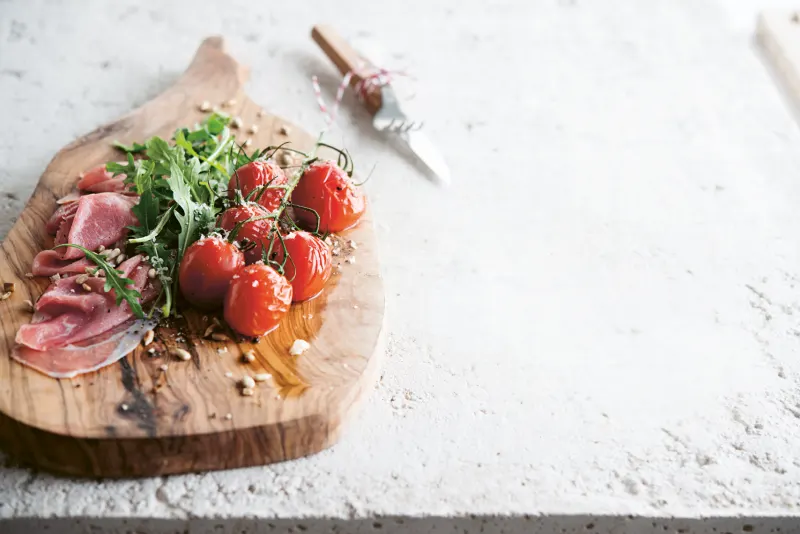 FODMAP Salade van parmaham met tomaatjes uit de oven en Parmezaanse kaas