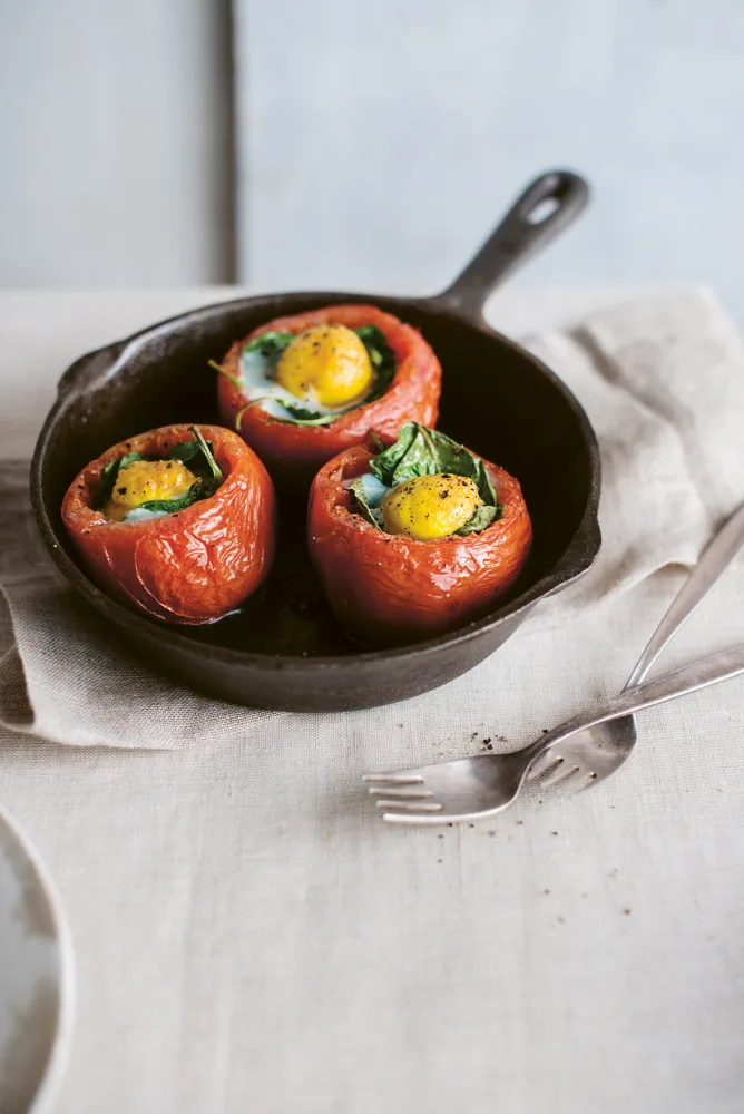 FODMAP Tomaat met spinazie en spiegelei uit de oven