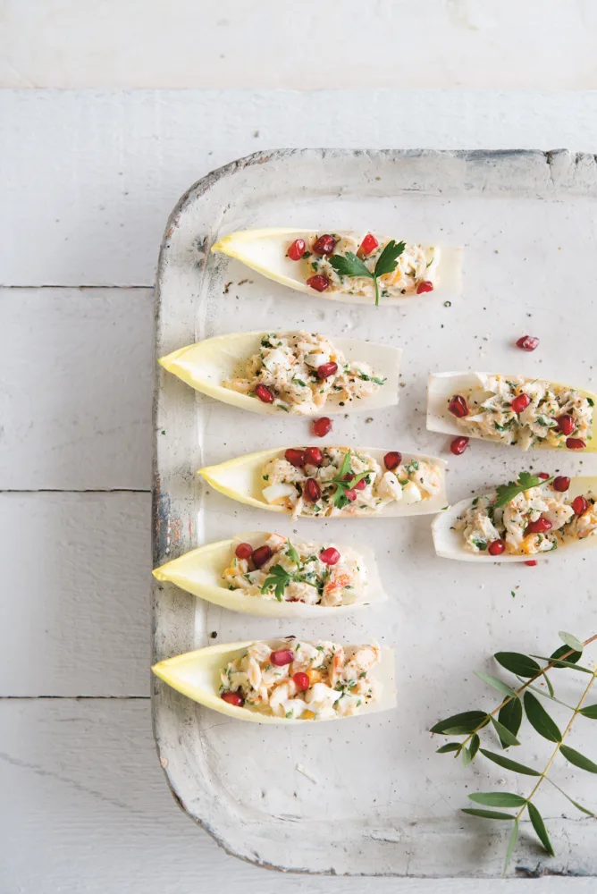 FODMAP Witloofbootjes met kingkrab en granaatappel
