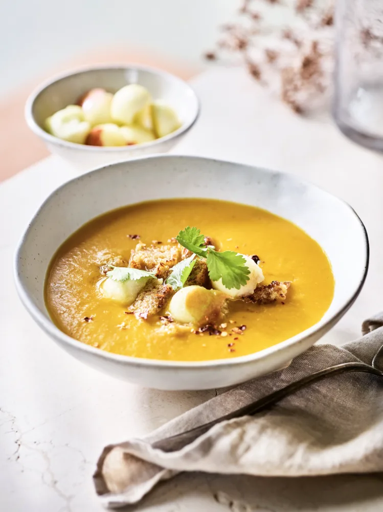 Pompoensoep met appelballetjes